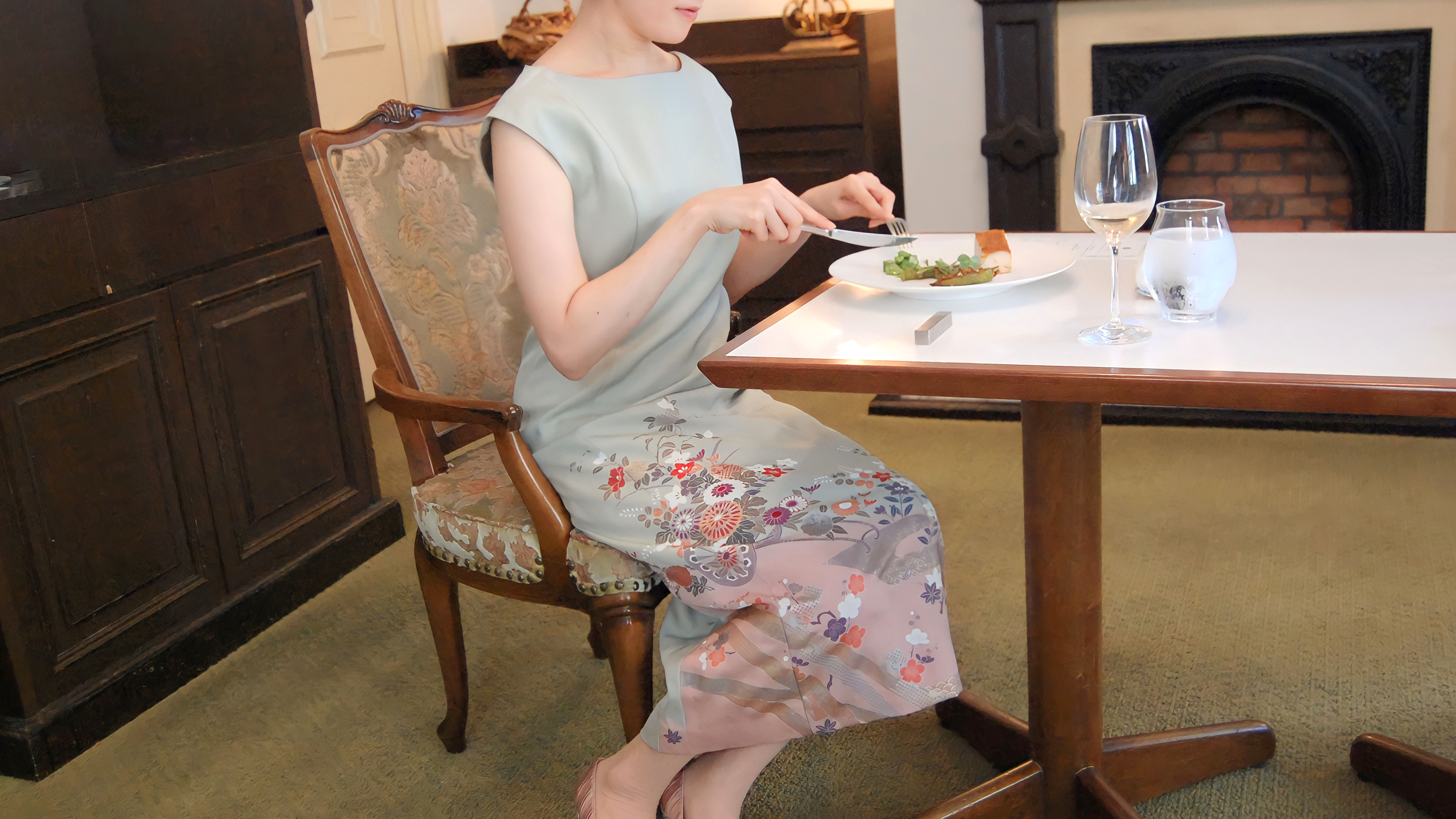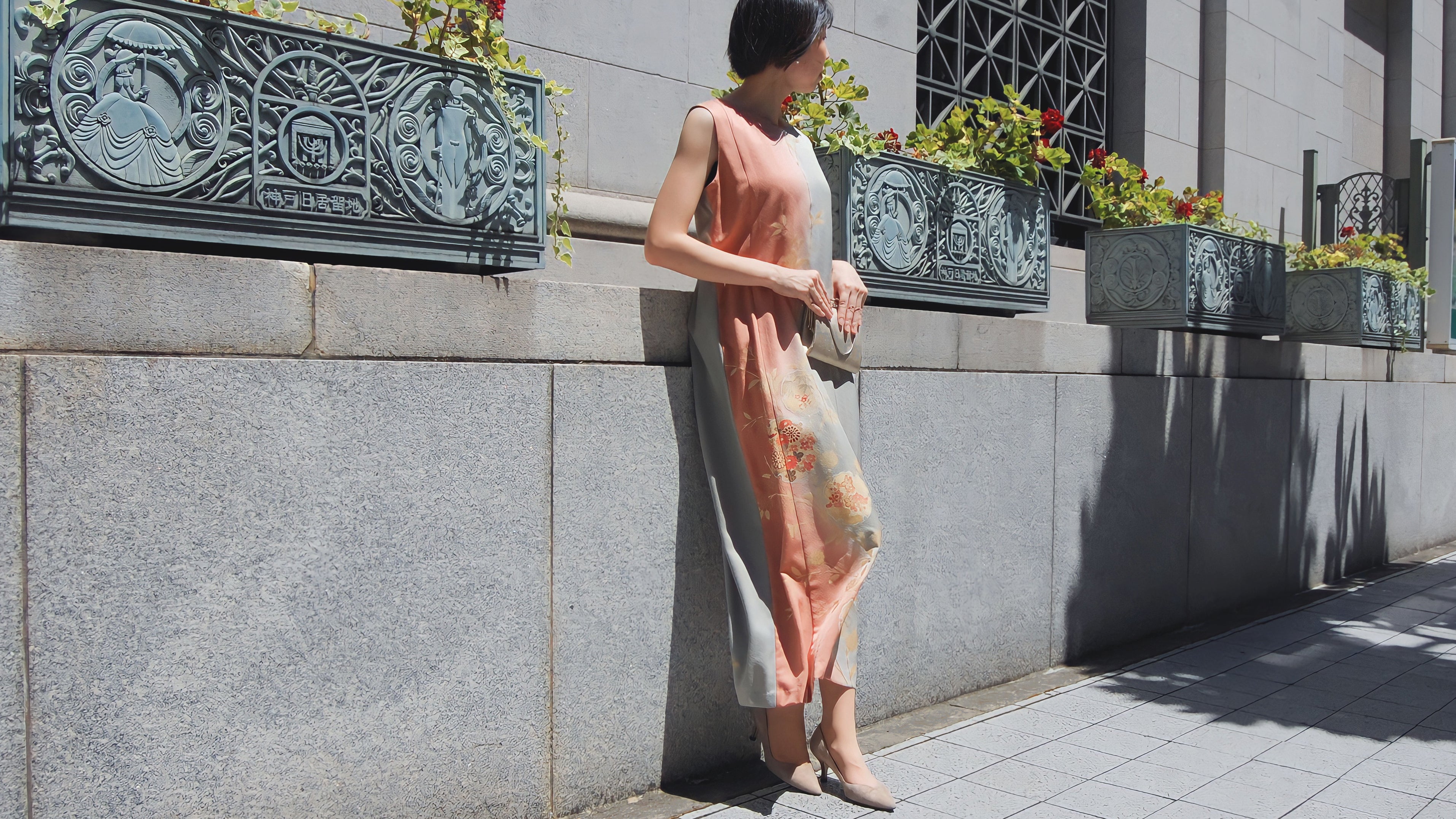 足首が覗き歩く姿も美しく演出全てのドレスに同じ着物生地で
