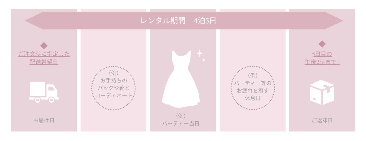 当店のレンタル期間は全きものドレス一律4泊5日です。